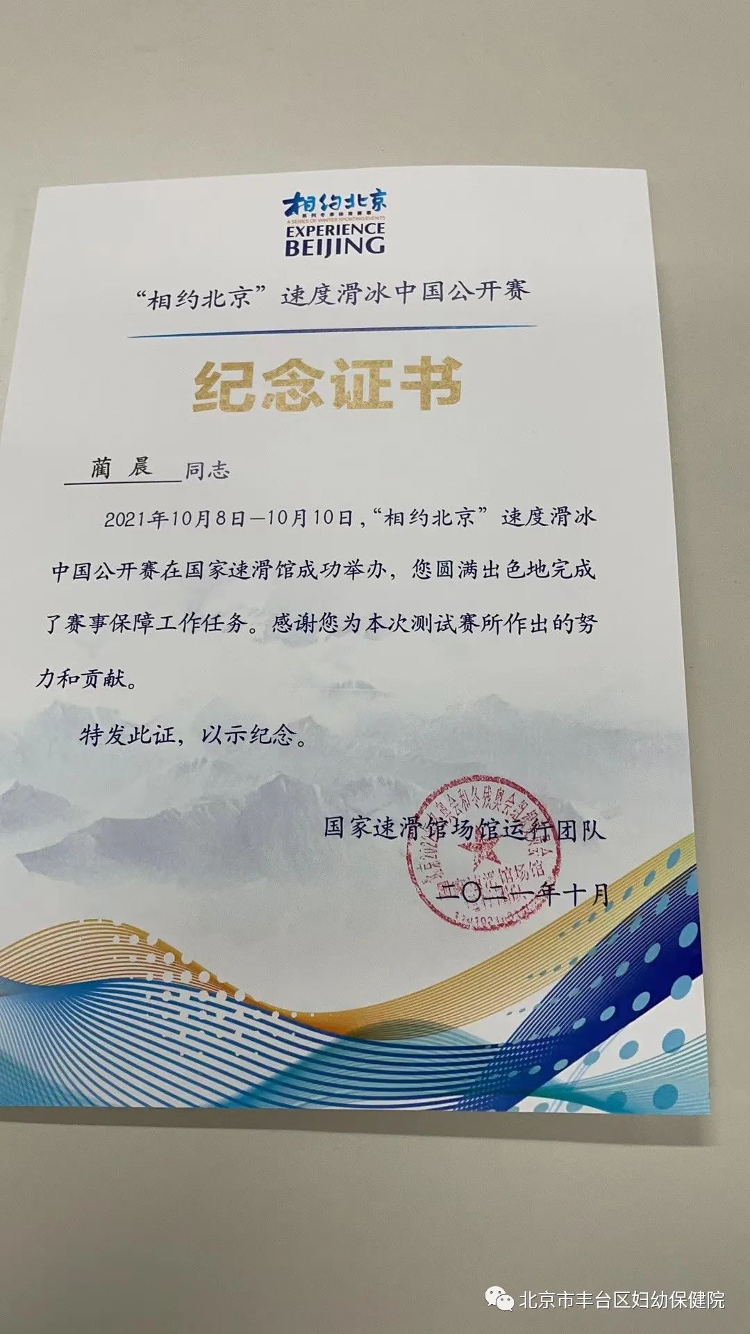 正如国家速滑馆场馆运行团队致医院的一封信中写道:贵单位选调的蔺晨同志,负责国家速滑馆场馆运行团队反兴奋剂赛事保障工作。作为业务领域骨干力量,她主动请缨,担当作为,在赛时将全力开展反兴奋剂业务领域的相关工作。充分体现了“冬奥人”的敬业、奉献、勇气与信心。