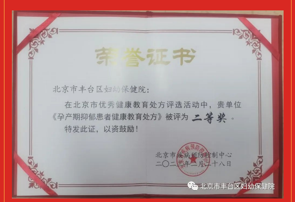 【喜报】丰台区妇幼保健院荣获北京市优秀健康教育处方征集评选活动一等奖、二等奖
