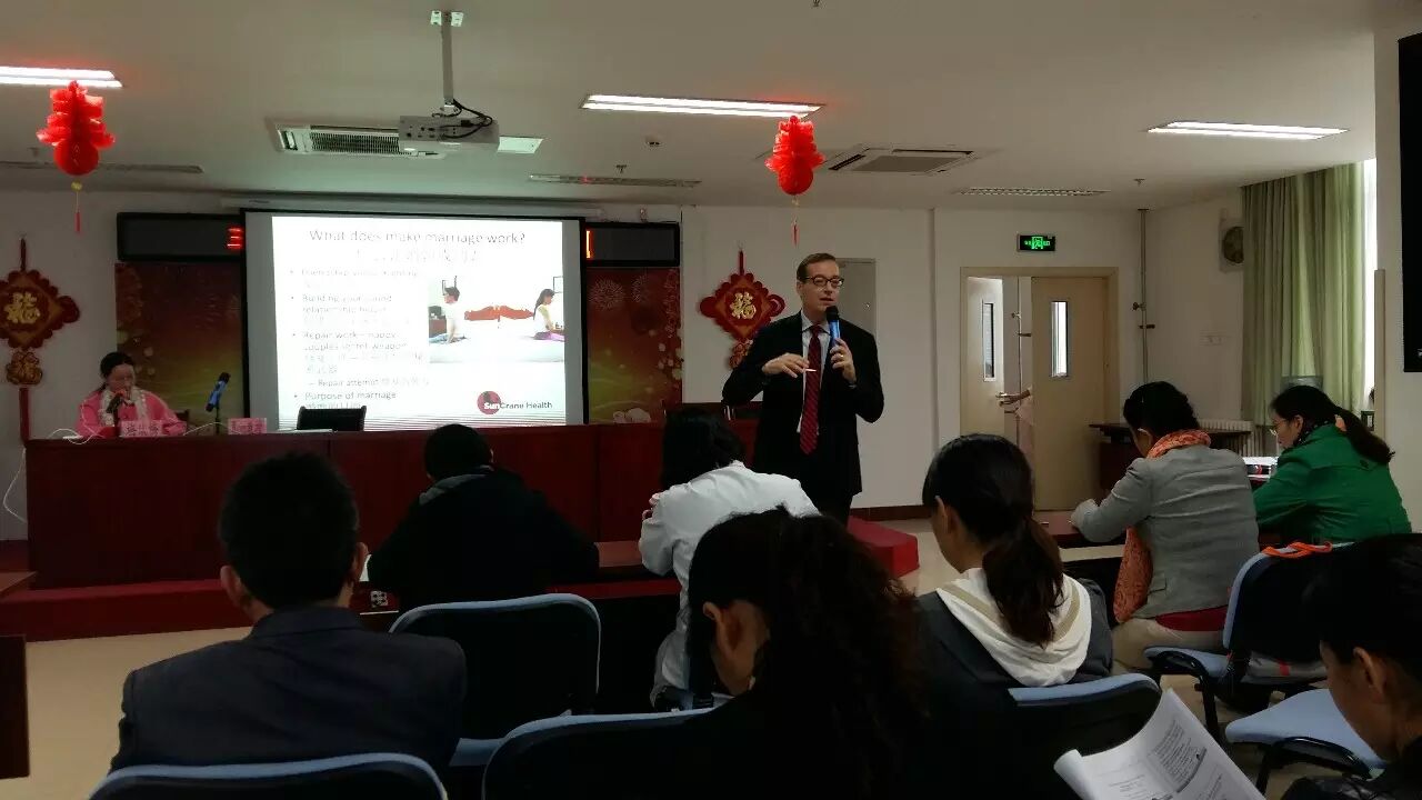 Ron教授在伊利诺伊技术学院获取博士学位,是美国注册临床心理学家,本次主要针对婚孕前心理保健方面培训,通过介绍约翰·哥特曼的循证婚姻成功法,阐述人与人之间亲密相处的基本要素及如何做到有效沟通,并应用幸福婚姻的七大原则的学习方法展开论坛。